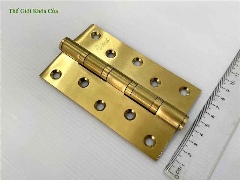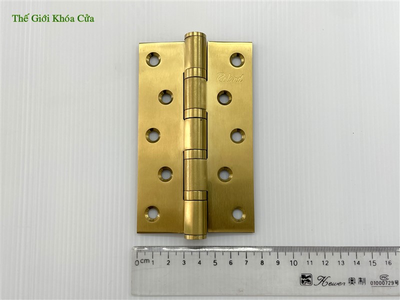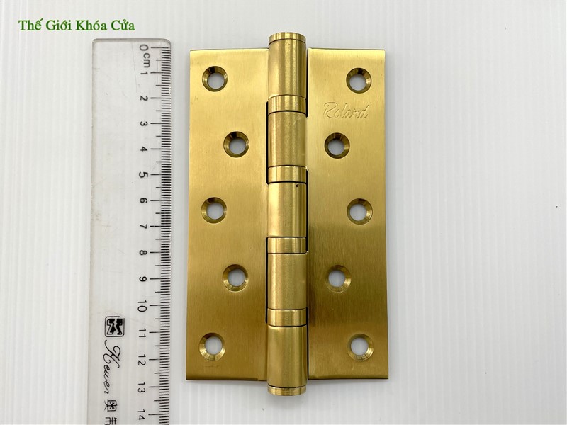 Bản lề lá Inox mạ Titan Roland được sản xuất trên dây chuyền công nghệ hiện đại, bản lề được làm bằng inox nguyên bản sau đó bề mặt được mạ Titan tạo màu vàng bắt mắt cho sản phẩm.