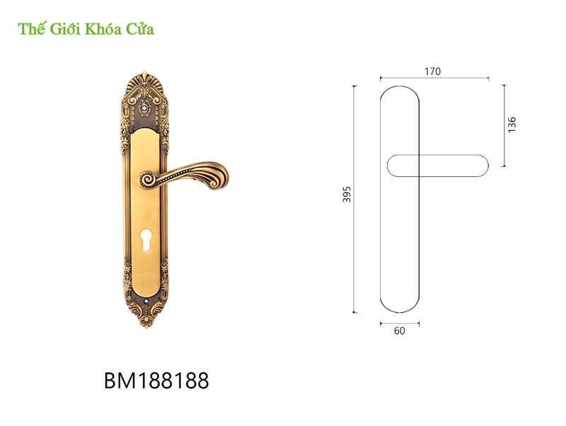 Khóa cửa bằng đồng thương hiệu Cabeza BM-188188-RG có kích thước lớn ( 40cm) thường được lắp cho cửa chính, cửa 2 cánh hoặc 4 cánh.