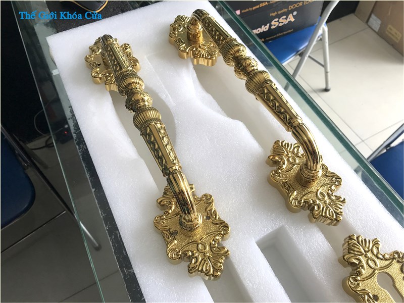 Khóa cửa đại sảnh BT - 6868 - 24K được nhập khẩu chính hãng từ thương hiệu nổi tiếng của Thái Lan Gold SSA. Mọi sản phẩm của Gold SSA được bảo hành 5 năm đổi mới.