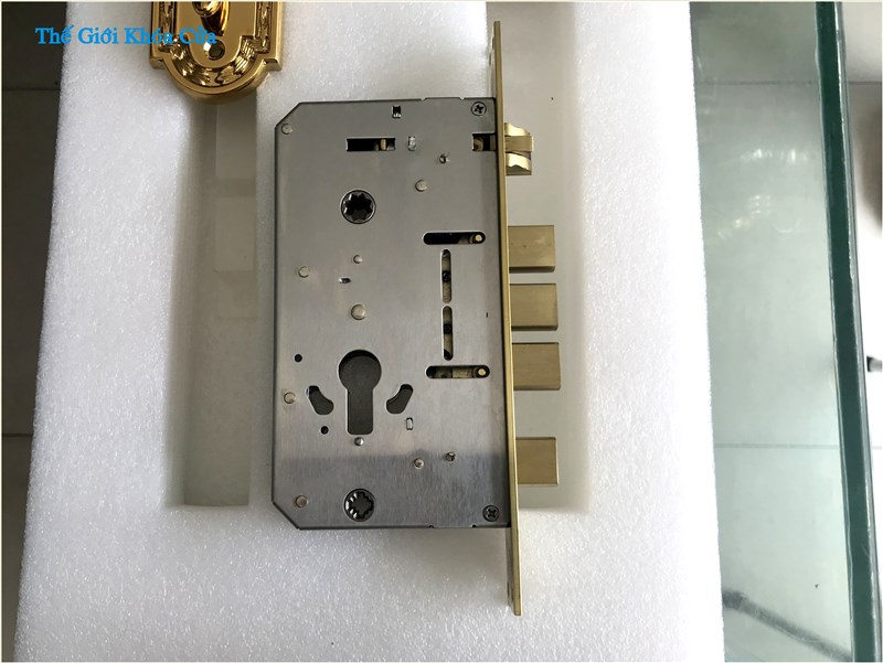 Khóa được làm hoàn toàn bằng đồng chất lượng cao, bề mặt được mạ vàng bằng công nghệ PVD cho bề mặt sản phẩm luôn sáng bóng, không bị bay mầu theo thời gian. Với công nghệ mạ hiện đại nhất, bề mặt khóa có độ cứng 6,5moh ( tương đương độ cứng của kính tôi ) giúp khóa chống trầy xước.
