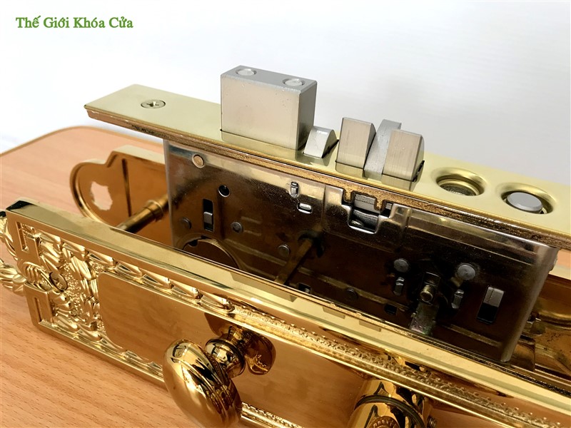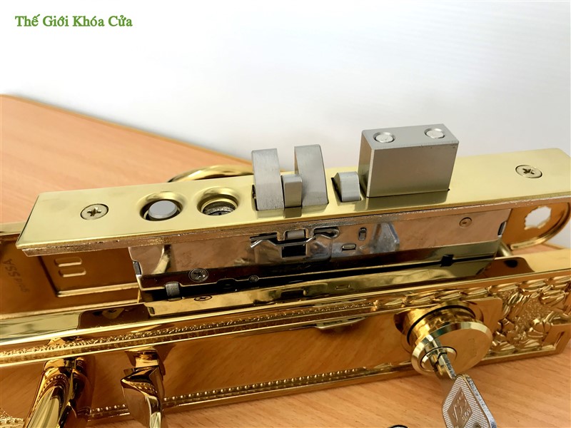 Khóa sử dụng hệ thân chuyên biệt lắp cho cửa đại sảnh, vô cùng ổn định và chắc chắn