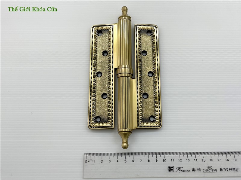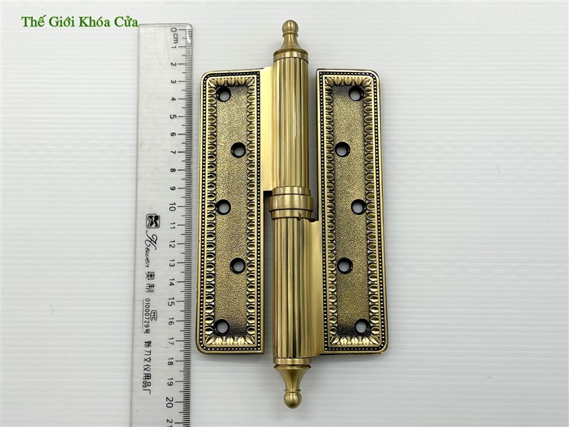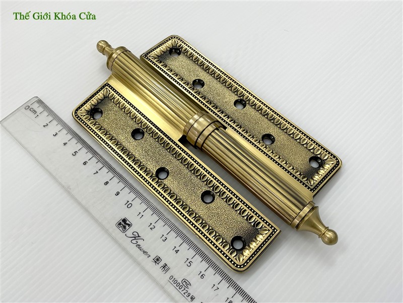 Bản lề cối bằng đồng Gold SSA loại 6inch được làm hoàn toàn bằng đồng cao cấp. Trục bản lề được làm bằng thép tôi, phía trong các ổ đỡ có vòng bi giúp cho bản lề có độ chịu lực cao hơn các loại bản lề thông thường khác. Bản lề là dòng sản phẩm cao cấp của thương hiệu Gold SSA Thái Lan được nhập khẩu chính hãng về Việt Nam.