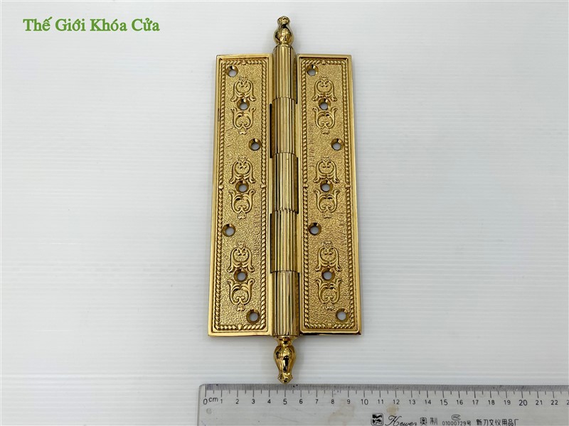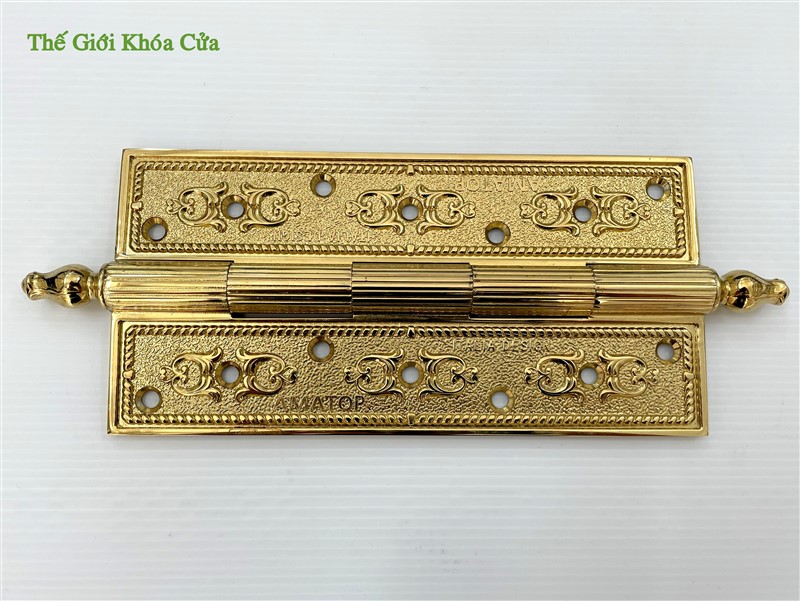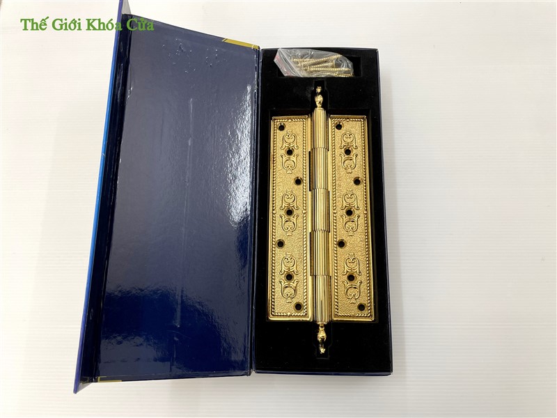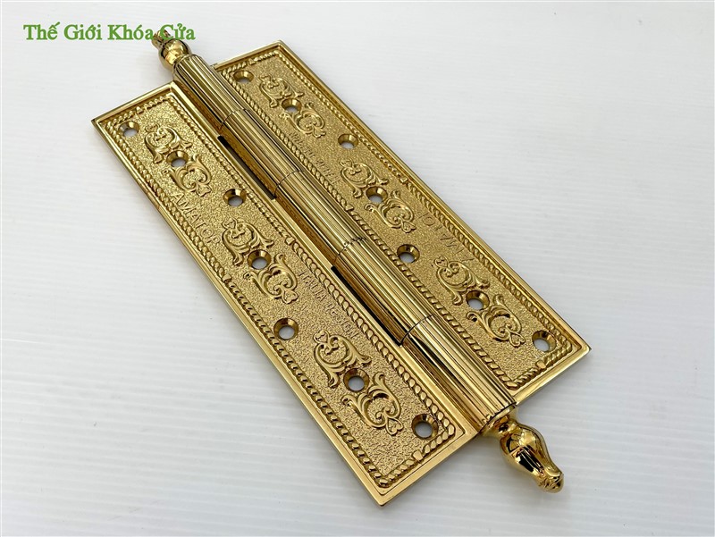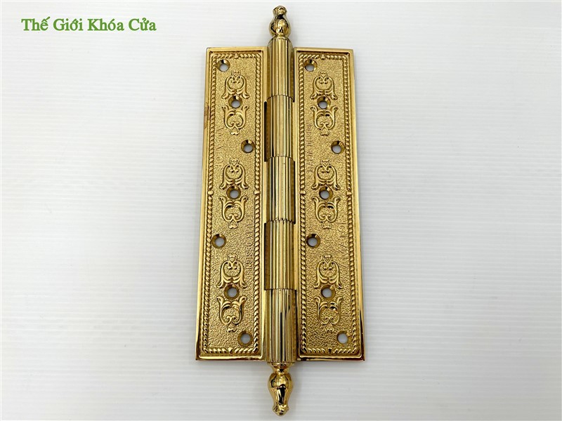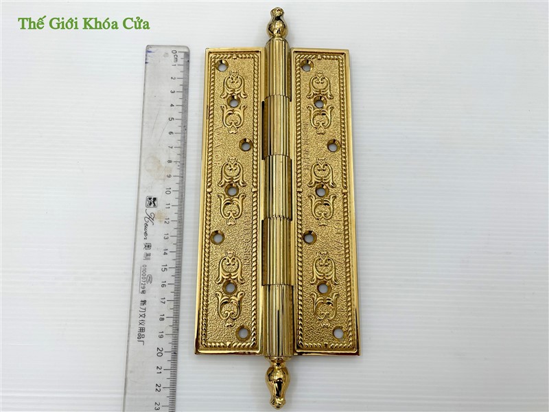 Bản lề có hoa văn tân cổ điển, góc cạnh sắc nét trau chuốt tinh tế. Bản lề có chiều dài cánh 20cm, phù hợp lắp cho cửa có độ dầy từ 4,5cm trở lên. Thường được lắp cho cửa chính hoặc cửa đại sảnh