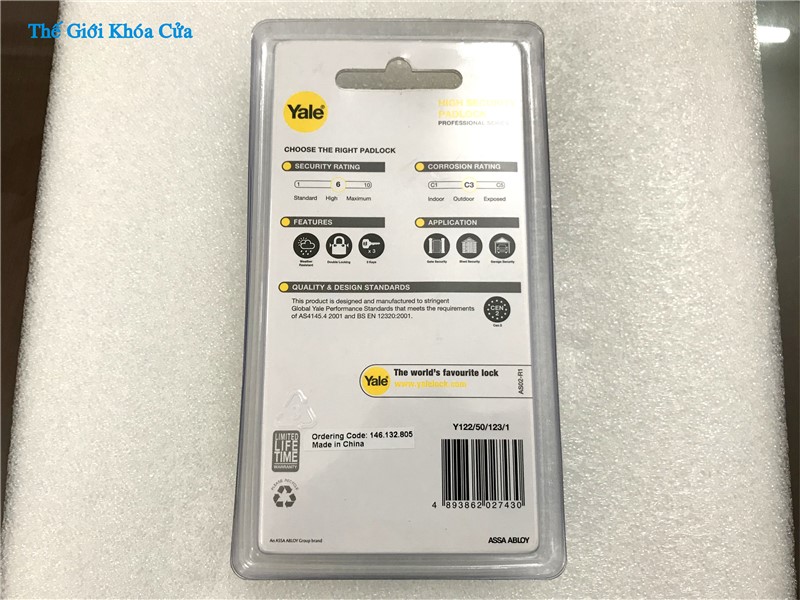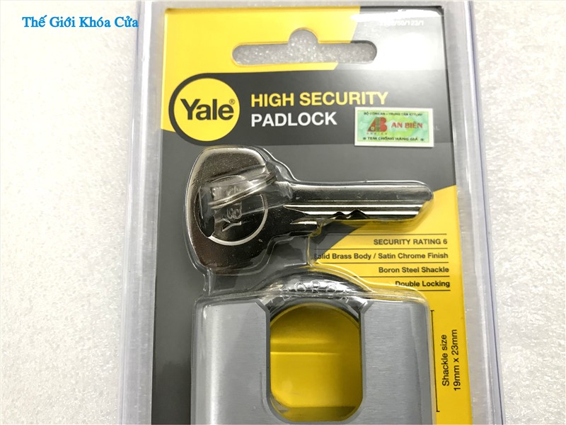 Khóa chống cắt, chống trộm có tai chống cạy cao cấp Yale - Y122/50/123/1 của thương hiệu danh tiếng toàn cầu Yale có thân được làm bằng đồng mạ Niken phủ trắng bên ngoài. Khóa có côn ( vòng cầu ) làm bằng thép tôi Boron có độ cứng cao chống cắt. Khóa phù hợp cho sử dụng ngoài trời vì chịu nắng mưa rất tốt.