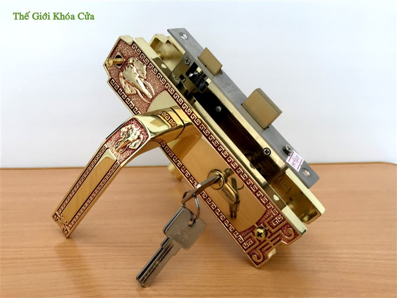 Khóa được làm bằng đồng thau, là một trong những dòng sản phẩm bán chạy bậc nhất do chất lượng đảm bảo cùng hoa văn phù hợp với kiến trúc của Việt Nam