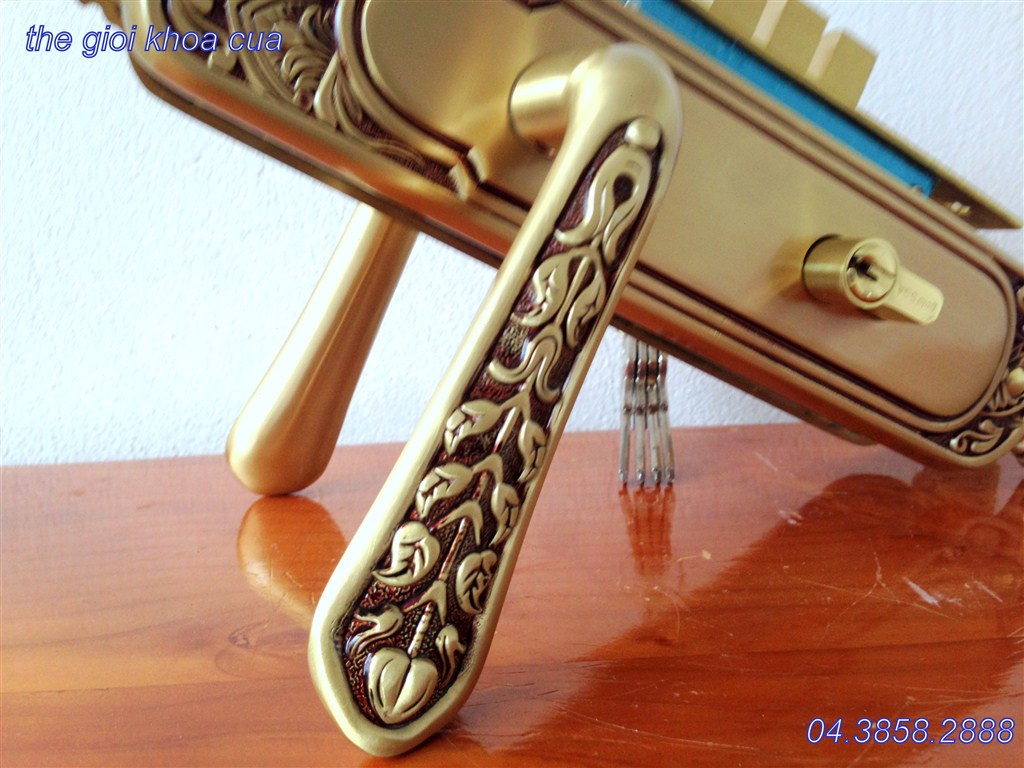 Khóa có tay ốp được làm bằng đồng tỉ lệ 57% sau đó được tạo màu và phủ một lớp 2K chống lão hóa lên bề mặt, giúp cho khóa bền màu theo thời gian