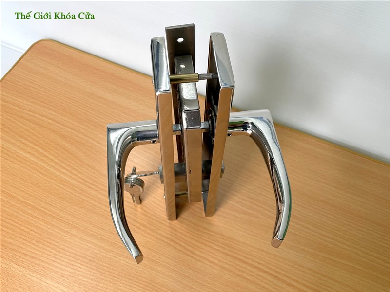 Ốp khóa dạng chữ nhật hạ bậc viền được đánh bóng tạo vẻ sang trọng. Tay khóa đặc dạng cong giúp người sử dụng thoải mái khi cầm nắm. Khóa có thiết kế hiện đại sang trọng, không bị lỗi mốt.