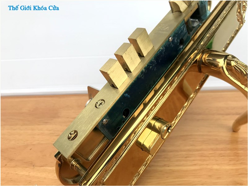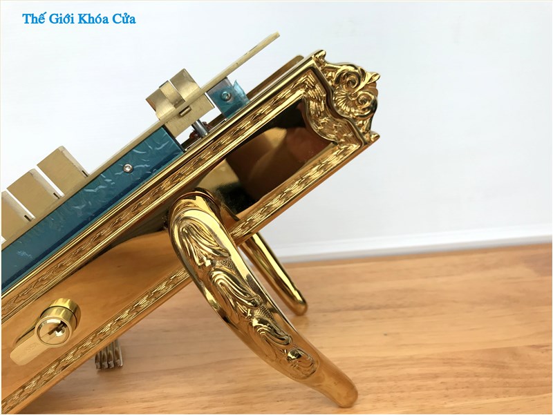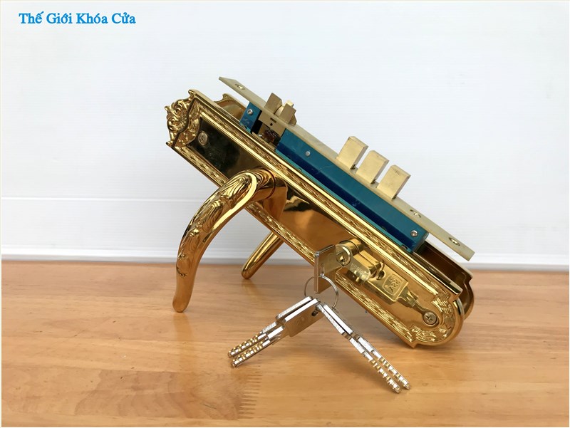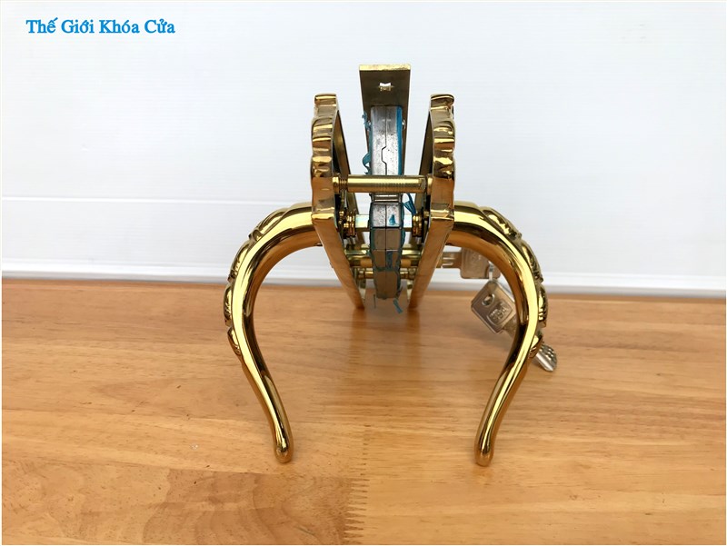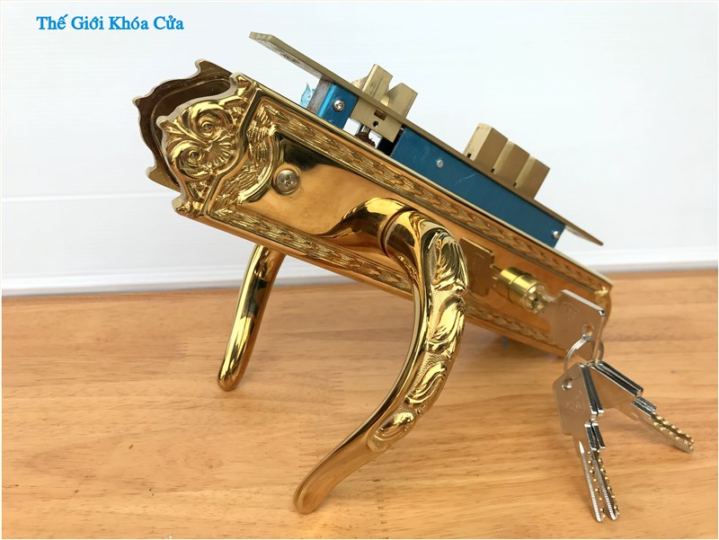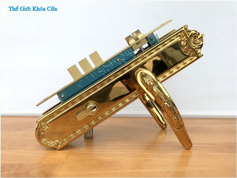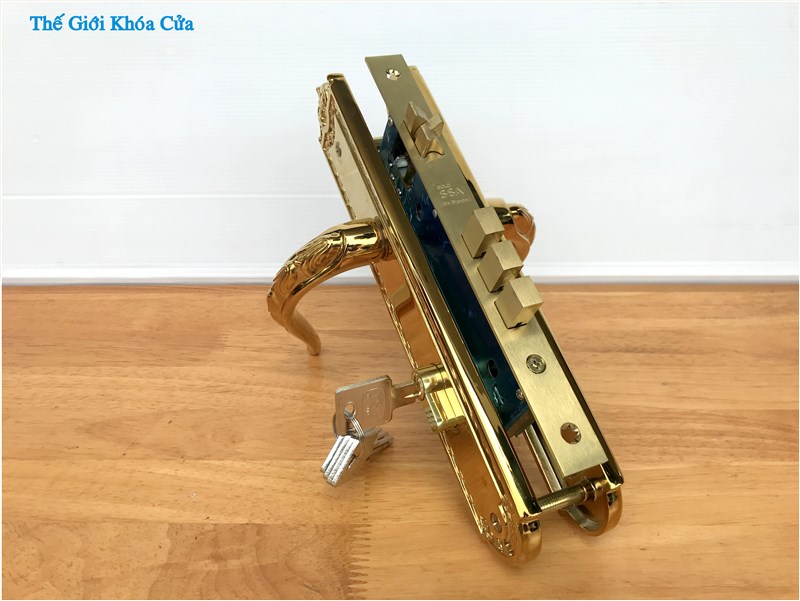 Khóa là dòng sản phẩm cao cấp nhất cửa thương hiệu Gold SSA, được làm bằng đồng đỏ 57% sau đó được mạ vàng bằng công nghệ mạ PVD ( công nghệ mạ bằng phương pháp bay hơi bám trụ bề mặt ở nhiệt độ cao ) tạo nên cho sản phẩm bề mặt sáng bóng, đường nét tinh xảo và không bị ô xi hóa theo thời gian