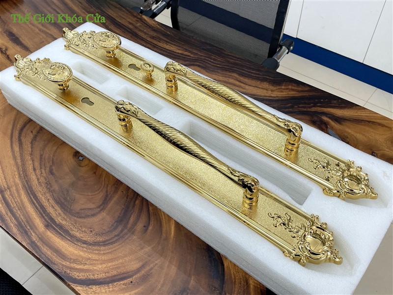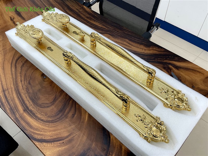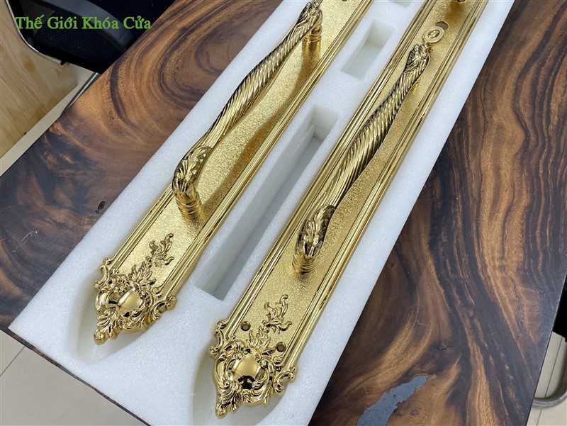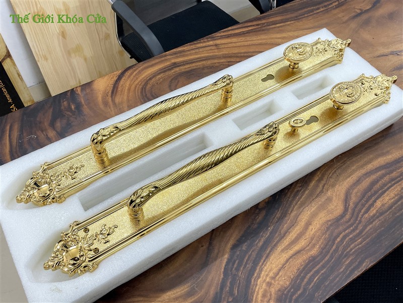 Khóa cửa đại sảnh Gold SSA XXL-6363-PVD được nhập khẩu nguyên chiếc bởi Gold SSA Thái Lan. Khóa có kích thước rất lớn ( dài 81cm ) thường được lắp cho cửa đại sảnh, cửa đại hội có kích thước lớn, hoa văn cầu kì.