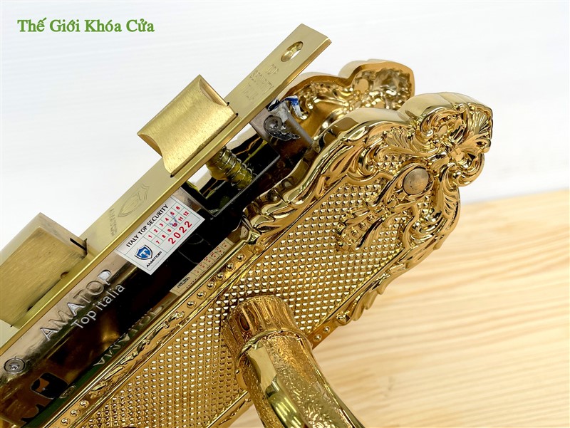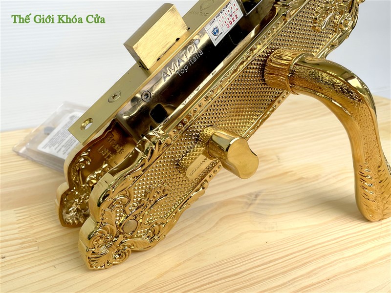 Khóa cửa AMATOP S-8812-SF được làm bằng đồng chất lượng cao, bề mặt tay ốp khóa được mạ PVD giúp cho khóa luôn sáng bóng và không bị bay màu theo thời gian. Khóa có thiết kế hoa văn tân cổ điển sang trọng, tinh tế cầu kì