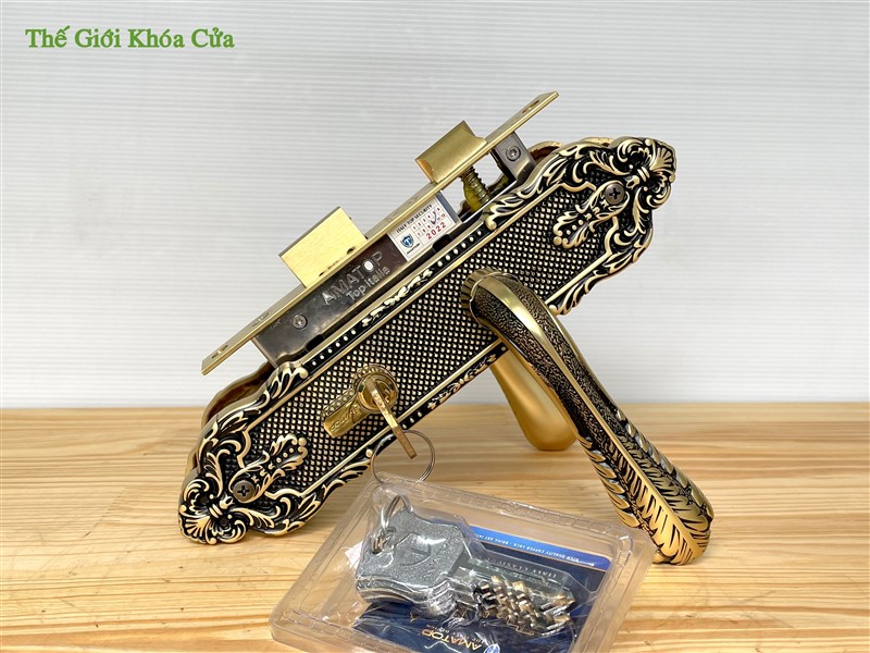 Khóa cửa AMATOP là thương hiệu khóa cửa Việt Nam chuyên về các dòng khóa đồng. Chất lượng đồng được kiểm nghiệm theo tiêu chuẩn Việt Nam.Khóa AMATOP chính hãng luôn có chìa khóa phụ và 5 chìa chính được niêm phong cẩn thận.
