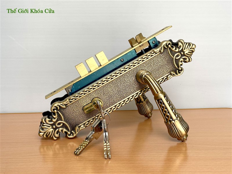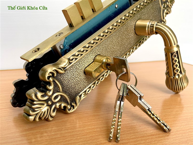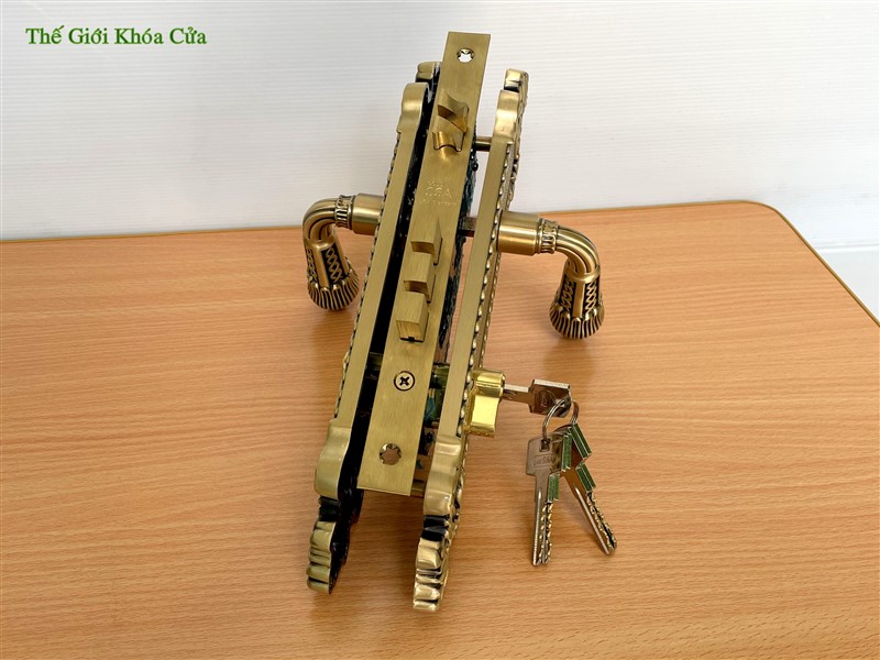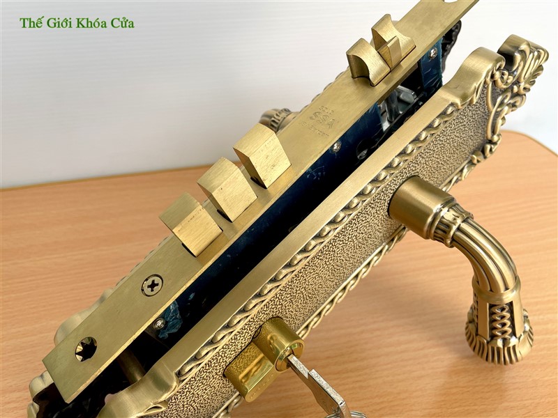 Khóa cửa bằng đồng Gold SSA BM-6868-SF có kích thước trung bình ( dài 28cm ) thường được lắp cho cửa thông phòng lớn hoặc cửa chính