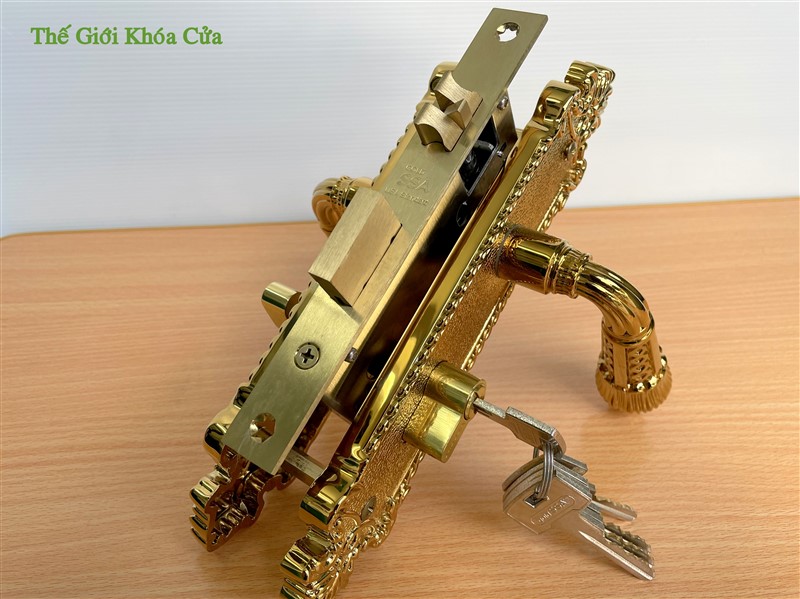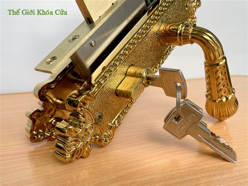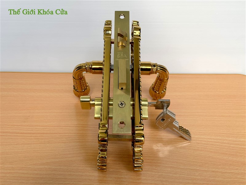 Khóa cửa Gold SSA BS-6868-PVD được làm bằng đồng chất lượng cao, bề mặt được mạ vàng PVD giúp khóa bền màu theo thời gian. Khóa có thiết kế hoa văn tân cổ điển sang trọng, tinh tế cầu kì