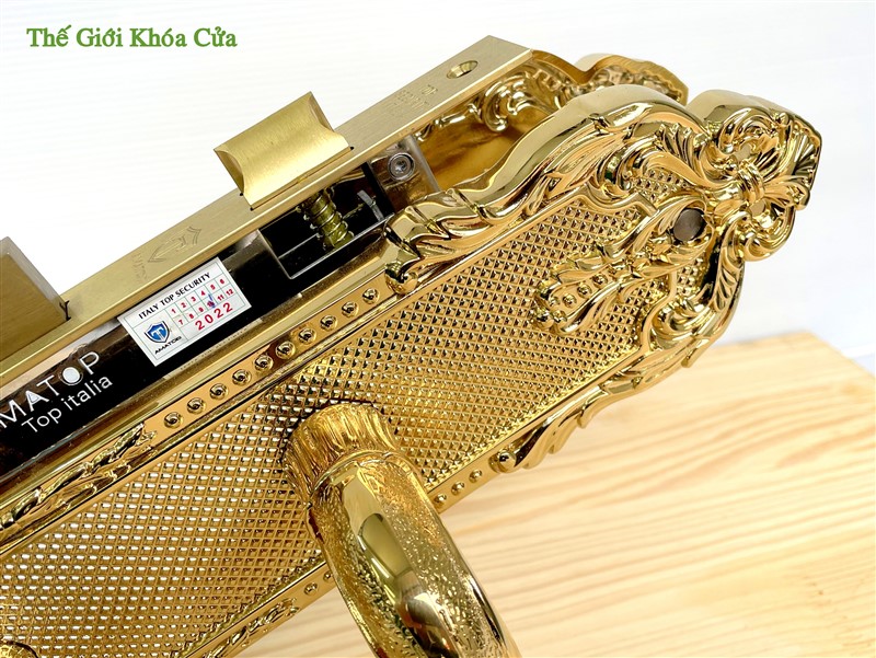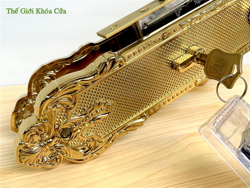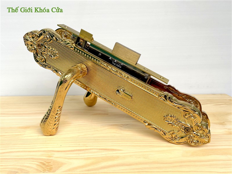 Khóa cửa bằng đồng AMATOP L-8812-PVD có kích thước lớn ( dài 40cm ) thường được lắp cho cửa chính 2 hoặc 4 cánh