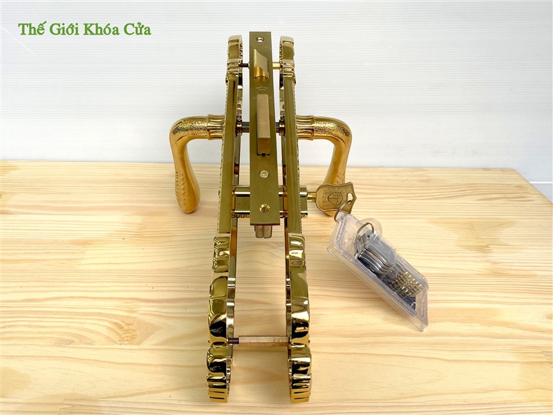 Khóa được làm bằng đồng thau cao cấp bề mặt tay ốp khóa được mạ PVD giúp cho khóa không bị hoen gỉ, bay màu theo thời gian. Tay khóa dạng thẳng tròn giúp hình dáng khóa trông vững chắc khi lắp đặt và thuận tiện khi nắm cầm.