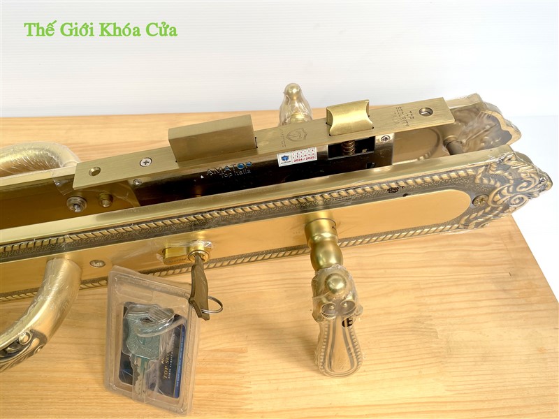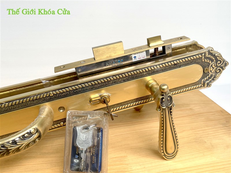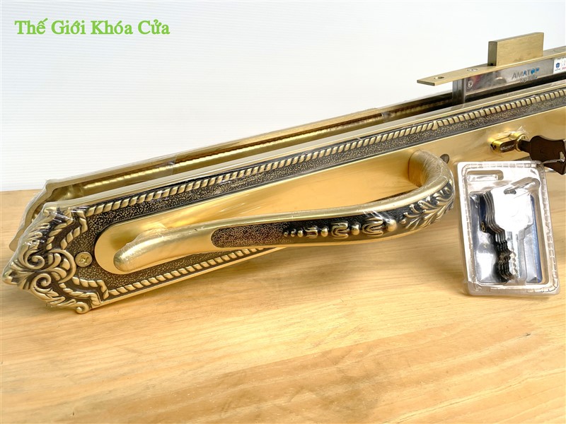 Khóa đại sảnh bằng đồng cao cấp AMATOP XXL - 6868 - SF có kích thước lớn ( dài 60cm ) thường được lắp cho cửa đại sảnh lớn 2 hoặc 4 cánh