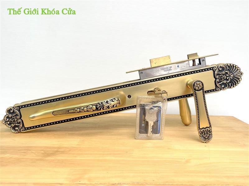 Khóa đại sảnh bằng đồng cao cấp AMATOP XXL - 8811 - SF - D có kích thước lớn ( dài 60cm ) thường được lắp cho cửa đại sảnh lớn 2 hoặc 4 cánh
