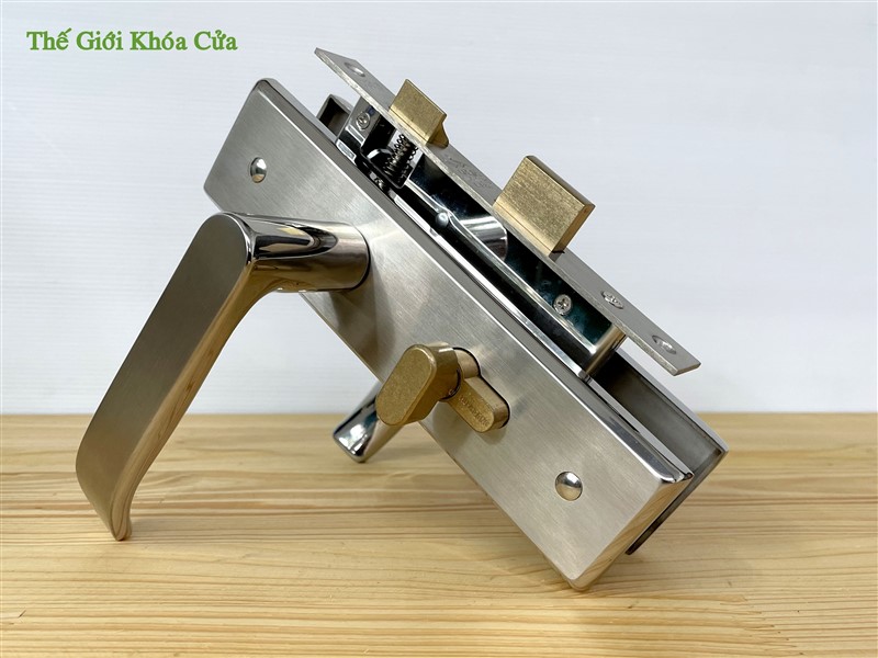 Khóa có tay khóa dạng thẳng vát cong, thuận tiện cho việc cầm nắm. Ốp khóa hình chữ nhật cho kiểu dáng hiện đại, không lỗi mốt theo thời gian.