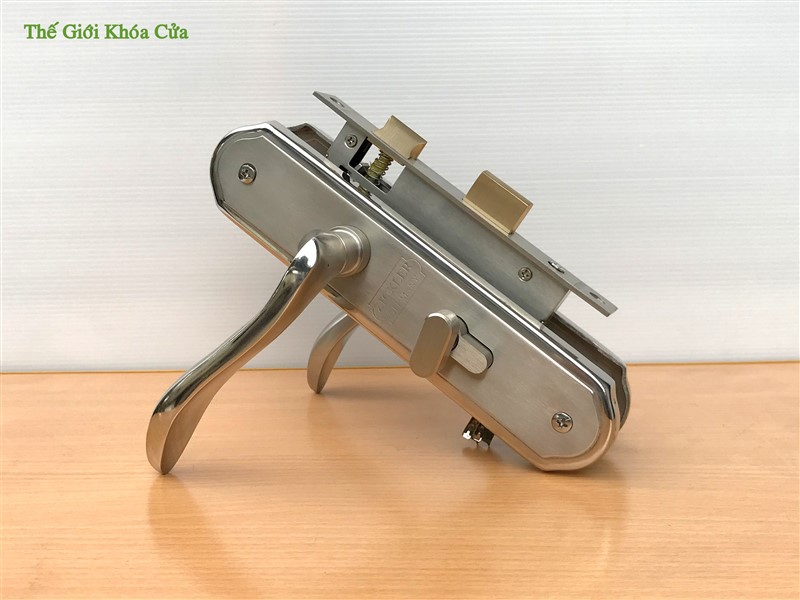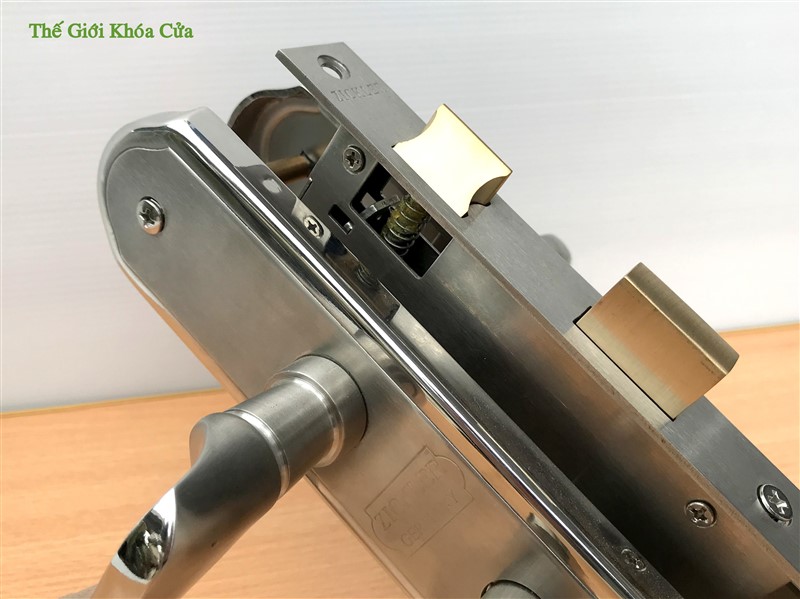 Thân khóa được làm bằng Inox, các chốt lẫy được làm bằng đồng chống khoan phá, bên trong các chi tiết được tra sẵn dầu mỡ giúp khóa hoạt động ổn định mà không cần bảo dưỡng suốt vòng đời.