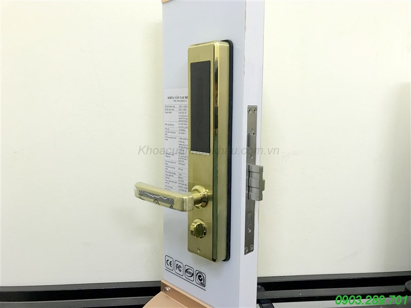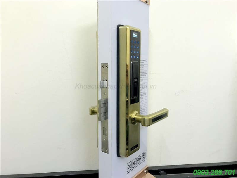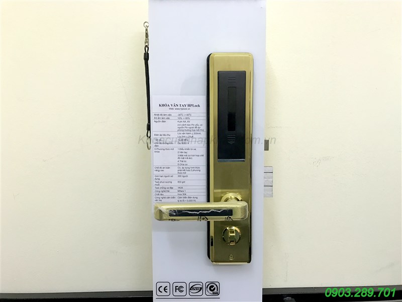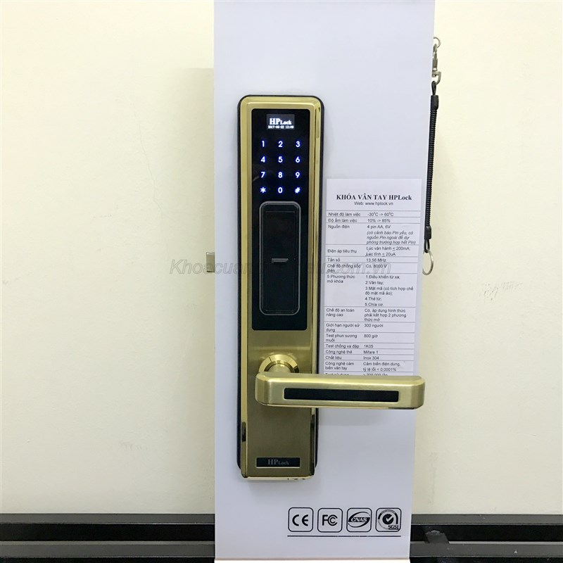 Khóa vân tay HPLock model HP - F6800 - Mạ Vàng titan sửu dụng 5 phương thức mở khóa : Vân tay, thẻ từ , mã số, chìa cơ và điều khiển từ xa bằng bộ điều khiển được tích hợp mặc định.