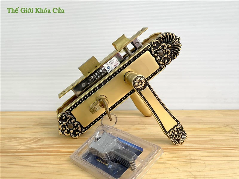 Về ưu điểm, mẫu khóa này có độ bền cao, ít bị ảnh hưởng bởi môi trường và có khả năng chống oxy hóa tốt. Đây là lựa chọn lý tưởng cho những ai đang tìm kiếm một sản phẩm vừa chắc chắn vừa có tính thẩm mỹ cao cho cửa gỗ.