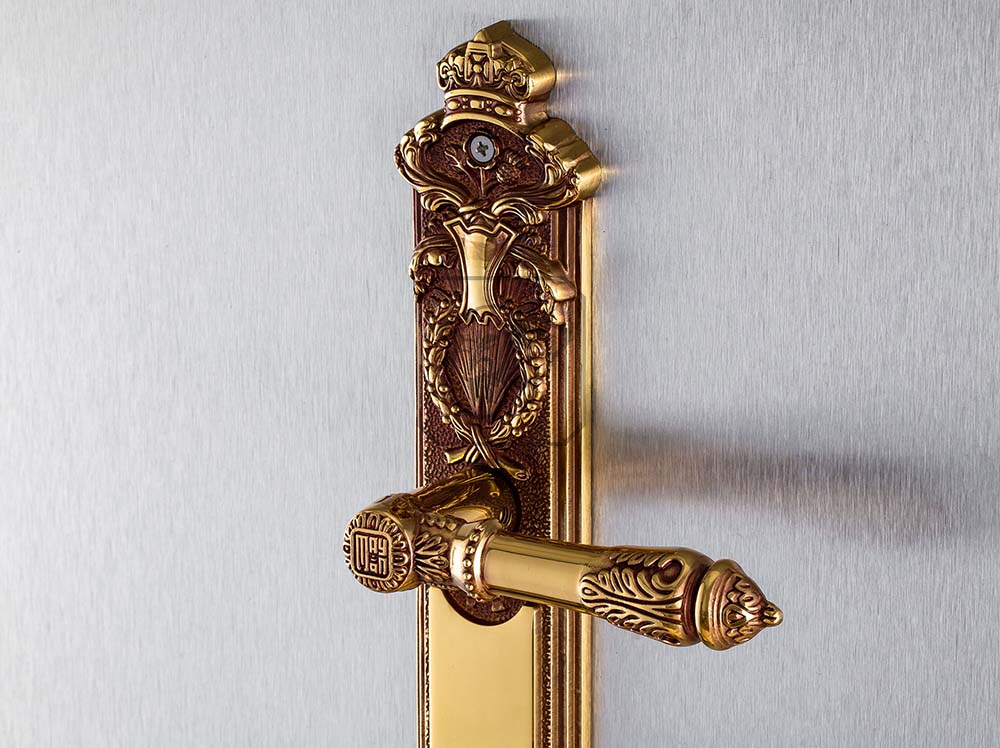 HC-8524DS là khóa đồng thau nguyên khối với tay gạt chắc chắn, thiết kế hoa văn tinh xảo. Dòng sản phẩm này phù hợp với các cánh cửa 2 cánh lớn, tạo điểm nhấn sang trọng cho không gian đại sảnh.